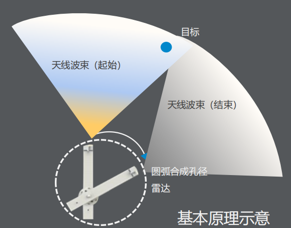 繞軸心旋轉(zhuǎn)的轉(zhuǎn)臂帶動(dòng)頂端的寬波束天線掃過目標(biāo),進(jìn)行圓弧合成孔徑高分辨率成像