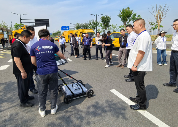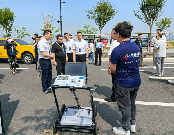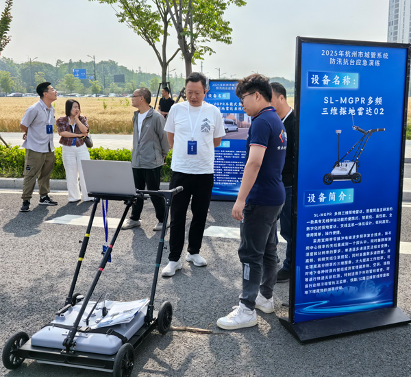 在演練裝備展示區(qū),武漢世隆科技的SL-VGPR車載式三維探地雷達(dá)系統(tǒng)(地質(zhì)災(zāi)害檢測(cè)車)與SL-MGPR多頻三維探地雷達(dá)吸引了杭州市城管局各級(jí)領(lǐng)導(dǎo)干部的重點(diǎn)關(guān)注,媒體紛紛駐足,我司工作人員現(xiàn)場(chǎng)為大家詳細(xì)講解設(shè)備的功能及應(yīng)用。兩款設(shè)備通過(guò)實(shí)地演示,直觀呈現(xiàn)了對(duì)地下管線與空洞的精準(zhǔn)探測(cè)能力。
