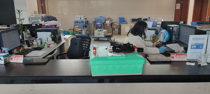第三步,當(dāng)工作人員叫到號時,將設(shè)備帶至工作臺由工作人員安排技術(shù)人員進(jìn)行檢定。